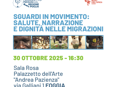 L’Ordine delle Psicologhe e degli Psicologi della Regione Puglia, in collaborazione con CUAMM Medici con l’Africa, organizza a Foggia il convegno di Psicologia delle Migrazioni.