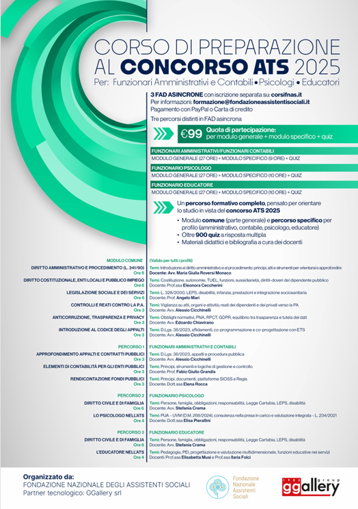 FAD Concorso ATS: https://www.corsifnas.it/corso-di-preparazione-al-concorso-ats-2025