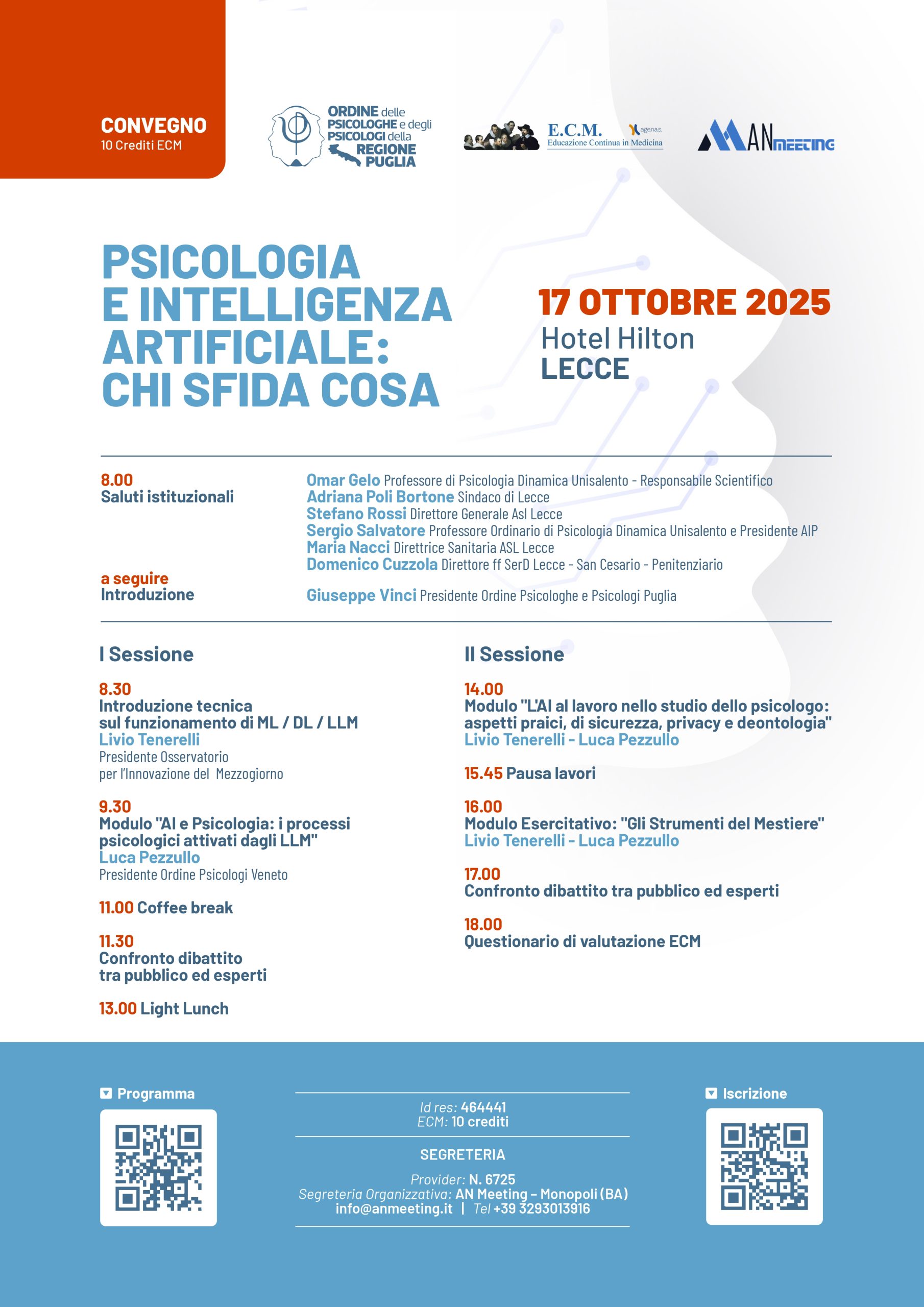 Nel seminario esploreremo i concetti fondamentali, da un punto di vista ๐ญ๐๐จ๐ซ๐ข๐๐จ ๐ ๐๐ฉ๐ฉ๐ฅ๐ข๐๐๐ญ๐ข๐ฏ๐จ, relativi a alle caratteristiche funzionali delle AI Generative nel contesto della Digital Mental Health e della psicologia professionale, specie nel suo impatto con persone particolarmente fragili e senza dimenticare gli aspetti deontologici e legali delle varie tipologie dโuso nella pratica professionale psicologica.