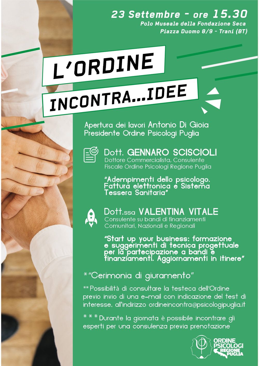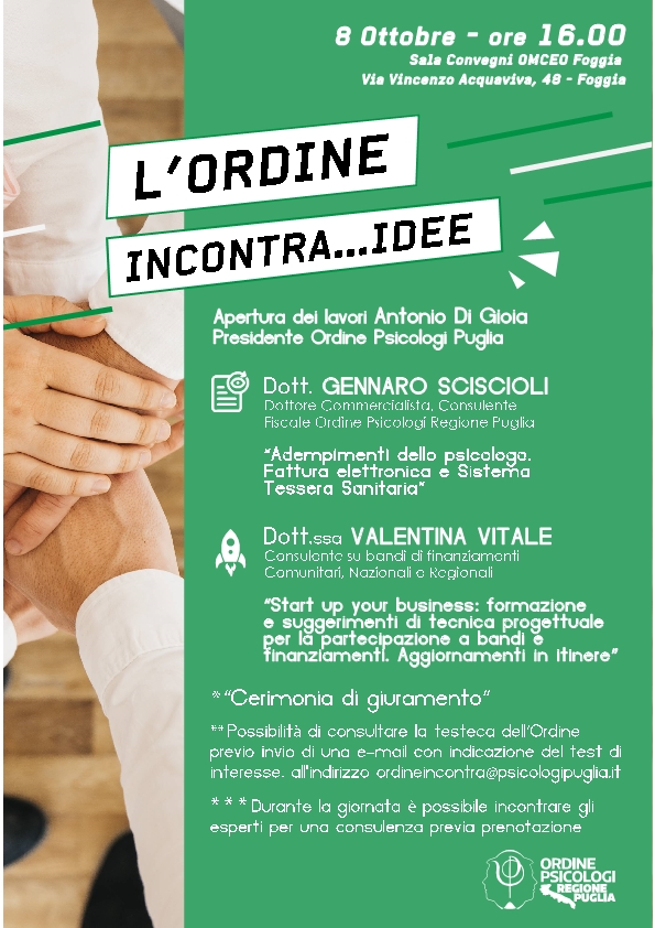 Vi ricordiamo che il 23 settembre p.v. a Trani, riprendono gli appuntamenti dell’Ordine Incontra, un ciclo di appuntamenti sul territorio pugliese, una serie di incontri …
