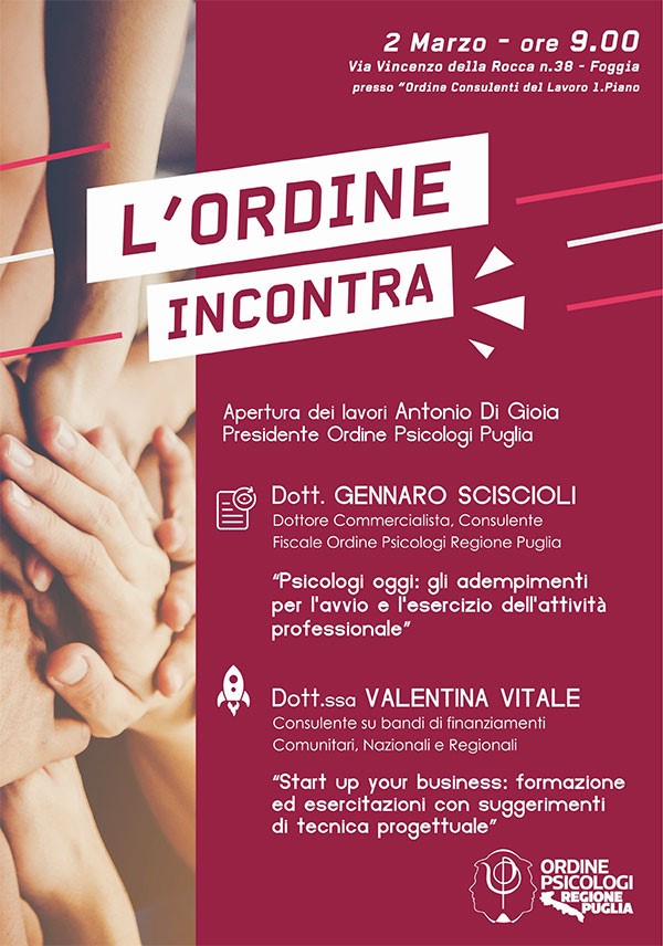 Il 2 marzo a Foggia si svolgerà il primo appuntamento dell’Ordine Incontra 2019. Seguici anche su Facebook per aggiornamenti in tempo reale sulle prossime date …