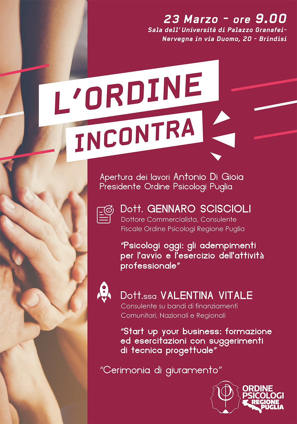 Gentile Collega, ti ricordo che il 23 marzo p.v. a Brindisi, è previsto il secondo appuntamento del progetto l’Ordine Incontra, un ciclo di appuntamenti sul …