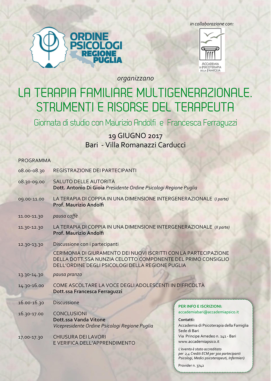 Il convegno La terapia familiare multigenerazionale. Strumenti e risorse del terapeuta è una giornata di studio con Maurizio Andolfi e Francesca Ferraguzzi, organizzata dall’Ordine degli …