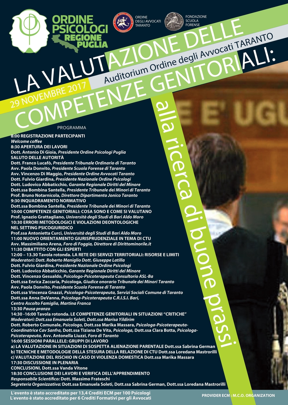 Gentile Collega, ho il piacere di invitarti al Convegno organizzato dall’Ordine degli Psicologi della Regione Puglia sul tema “La valutazione delle competenze genitoriali: alla ricerca …