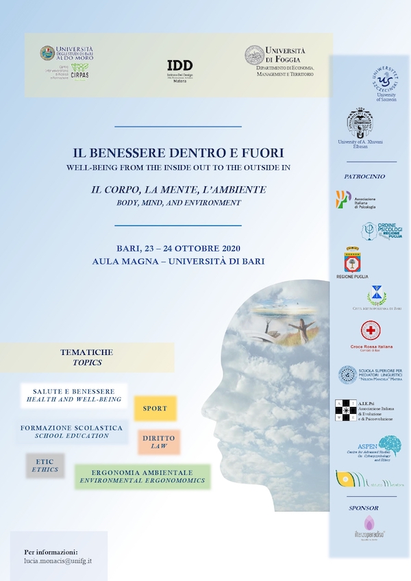 Convegno on line patrocinato dall’Ordine degli Psicologi Puglia “Il Benessere dentro e fuori” del 23-24 ottobre