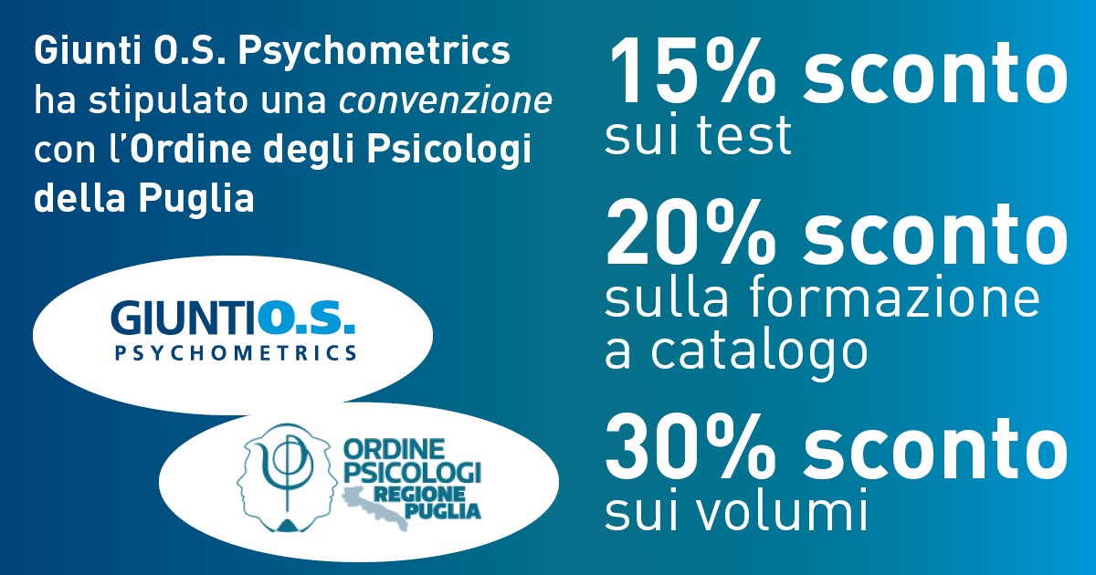 L’Ordine Psicologi della Puglia ha stipulato una convenzione con Giunti O.S.Psychometrics che consente delle agevolazioni sull’acquisto di volumi della casa editrice.