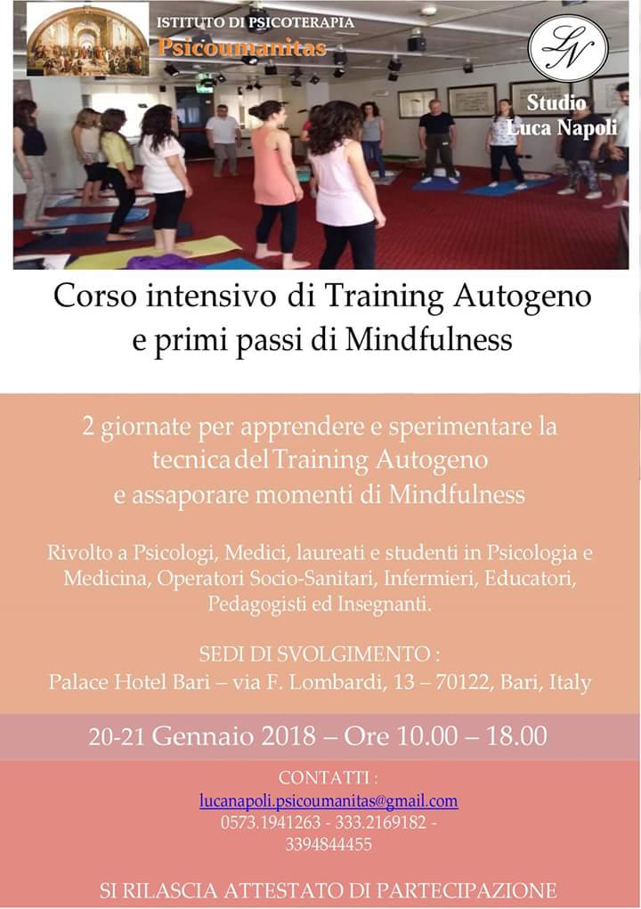 Per la partecipazione al Corso intensivo di Training autogeno e primi passi di Mindfulness, che si terrà il 20-21 gennaio presso l’hotel Palace Bari, è possibile usufruire della convenzione in atto con l’Ordine.