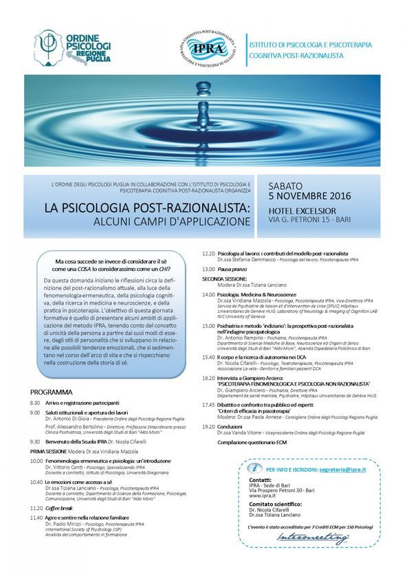 Home > Tutte le News > Eventi > La psicologia post-razionalista... La psicologia post-razionalista Marzo 31, 2017 Vedi allegati
