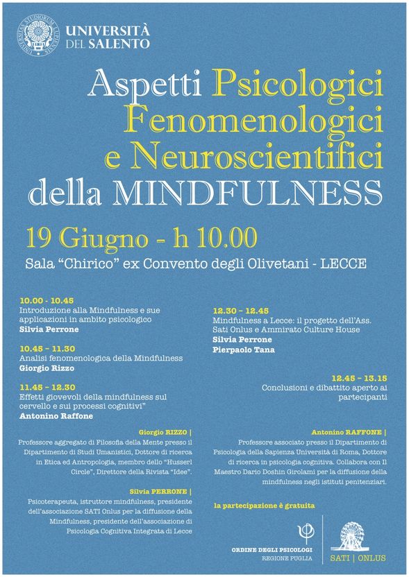Home > Tutte le News > Eventi > Aspetti psicologici, fenomenologici e Ne... Aspetti psicologici, fenomenologici e Neuroscientifici della mindfulness Marzo 31, 2017