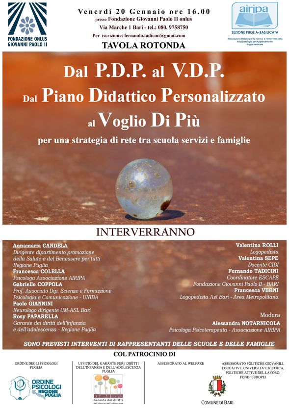 Una tavola rotonda per discutere di piani didattici personalizzati e la loro pianificazione strategica. Oltre alla partecipazioni di esperti del settore, interverranno rappresentanti delle scuole e delle famiglie.