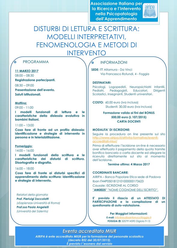 L’evento organizzato dall’AIRIPA è accreditato MIUR. È pertanto richiesta iscrizione per la partecipazione.