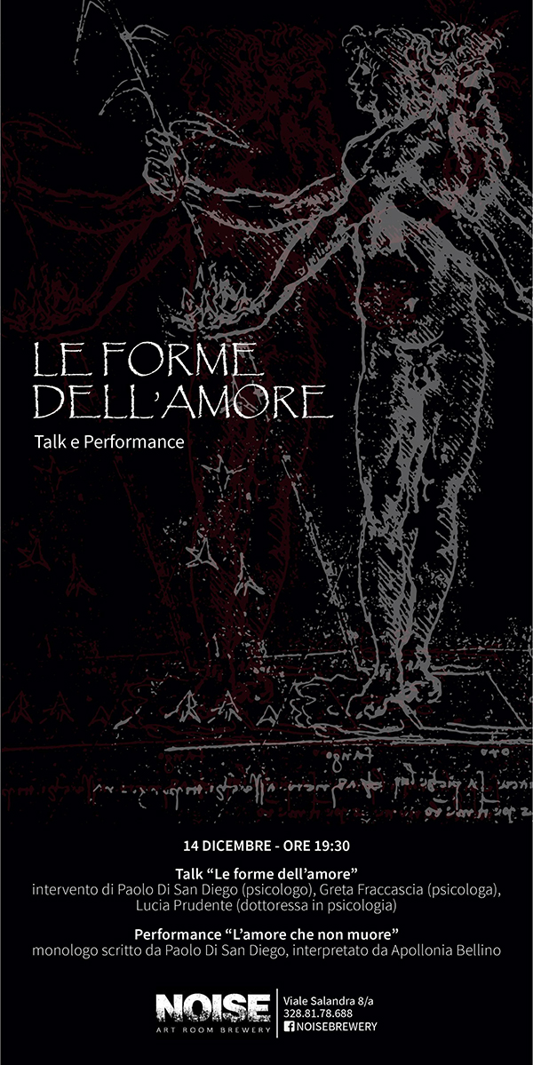 Vi invitiamo all’evento patrocinato “Le Forme dell’amore”, Talk e performance, il 14 dicembre 2019 alle ore 18.30, presso il Noise a Bari.