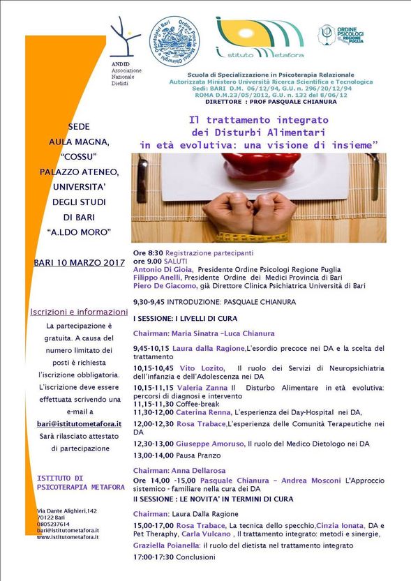Il prossimo evento patrocinato dall’Ordine è sul tema Il trattamento integrato dei Disturbi Alimentari in età evolutiva_ una visione di insieme.