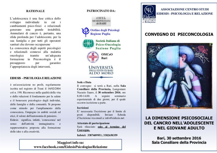Convegno di Psiconcologia dedicato al tema della dimensione psicosociale del cancro nell’adolescente e nel giovane adulto.