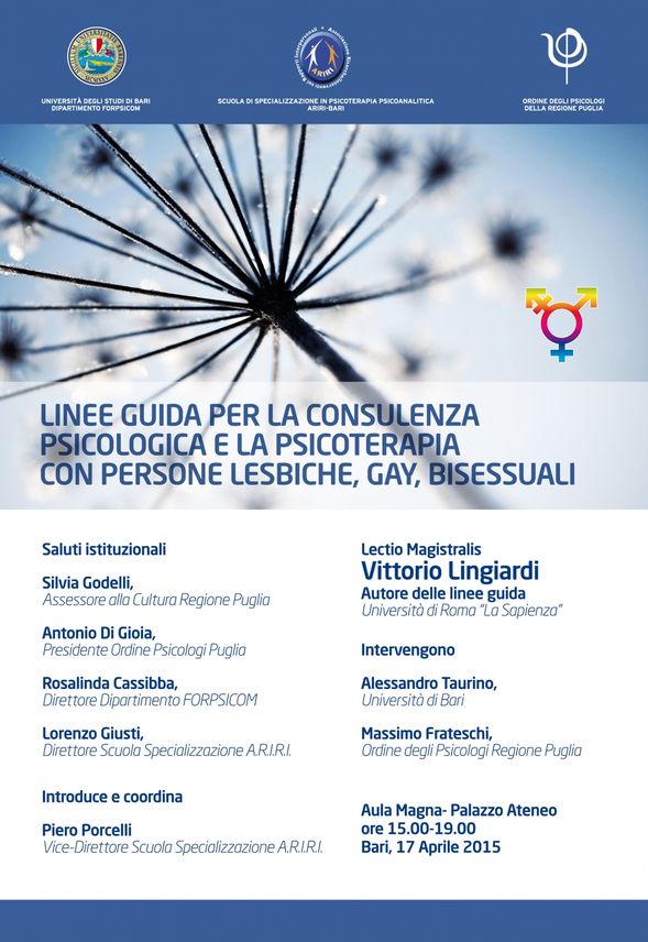 Home > Tutte le News > Eventi > Linee guida per la consulenza psicologic... Linee guida per la consulenza psicologica e la psicoterapia con persone lesbiche, gay, bisessuali Marzo 31, 2017