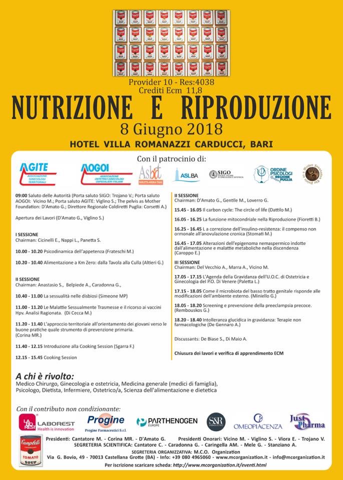 Segnaliamo l’evento “Nutrizione e Riproduzione” patrocinato dall’Ordine degli Psicologi di Puglia che si terrà venerdì 8 giugno, a partire dalle ore 9, presso l’Hotel Villa Romanazzi Carducci a Bari.