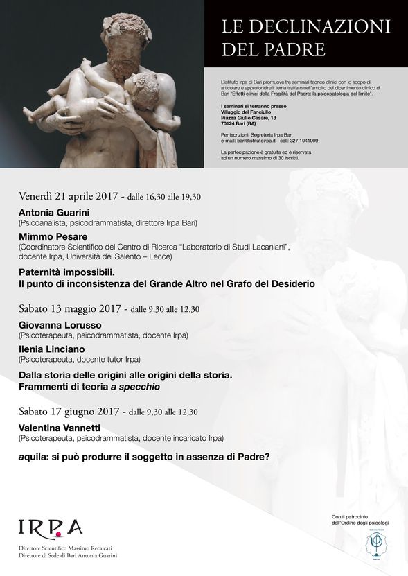 Si comunica che a causa dei lavori del G7, Bari sarà difficilmente accessibile a causa dei molteplici blocchi stradali, pertanto si è reso necessario spostare il Seminario dell’istituto Irpa di Bari del 13 maggio al 16 settembre che avrà sempre luogo nella sede dell’Irpa Bari e negli stessi orari.