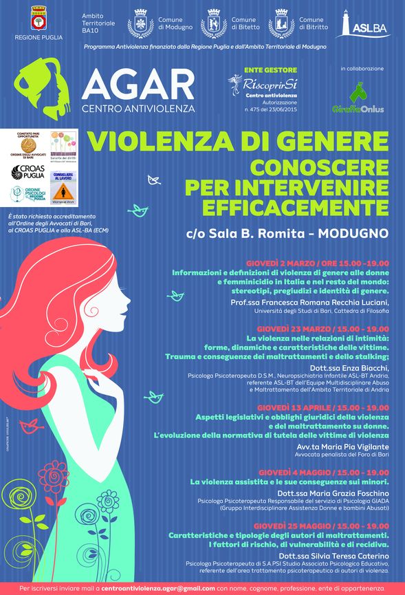 Per iscriversi all’evento inviare mail a centroantiviolenza.agar@gmail.com indicando nome, cognome, professione ed ente di appartenenza.