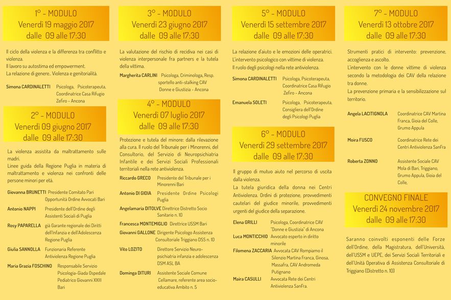 Il percorso si articola attraverso 7 giornate di formazione ed un Convegno finale per un totale di 64 ore.