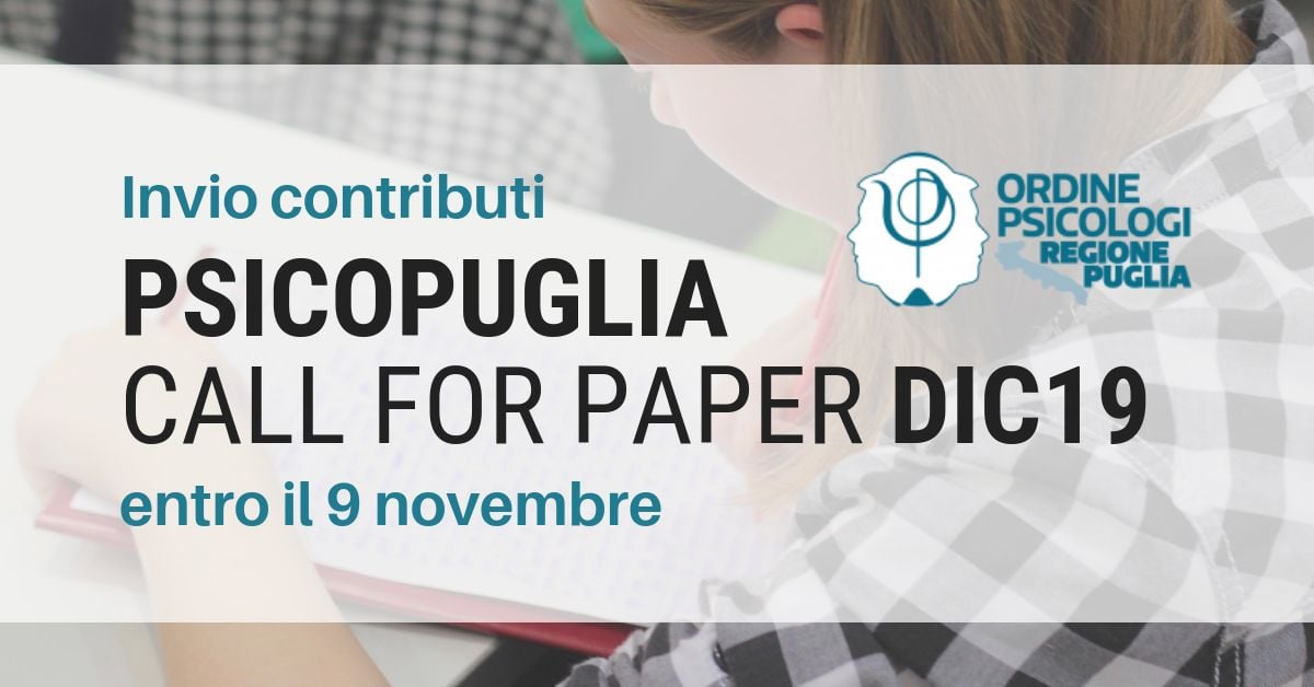 in prossimità dell’uscita di dicembre 2019 della rivista Psicopuglia, la Redazione è lieta di sollecitare e promuovere la proposta di contributi.