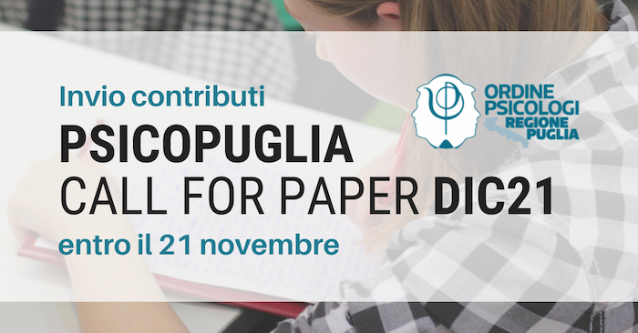 in prossimità dell’uscita di dicembre 2021 della rivista Psicopuglia, la Redazione è lieta di sollecitare e promuovere la proposta di contributi.