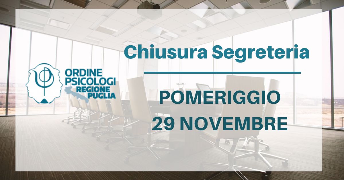 A causa della prosecuzione delle operazioni elettorali, si comunica la chiusura al pubblico della segreteria per il pomeriggio del 29 novembre 2019.