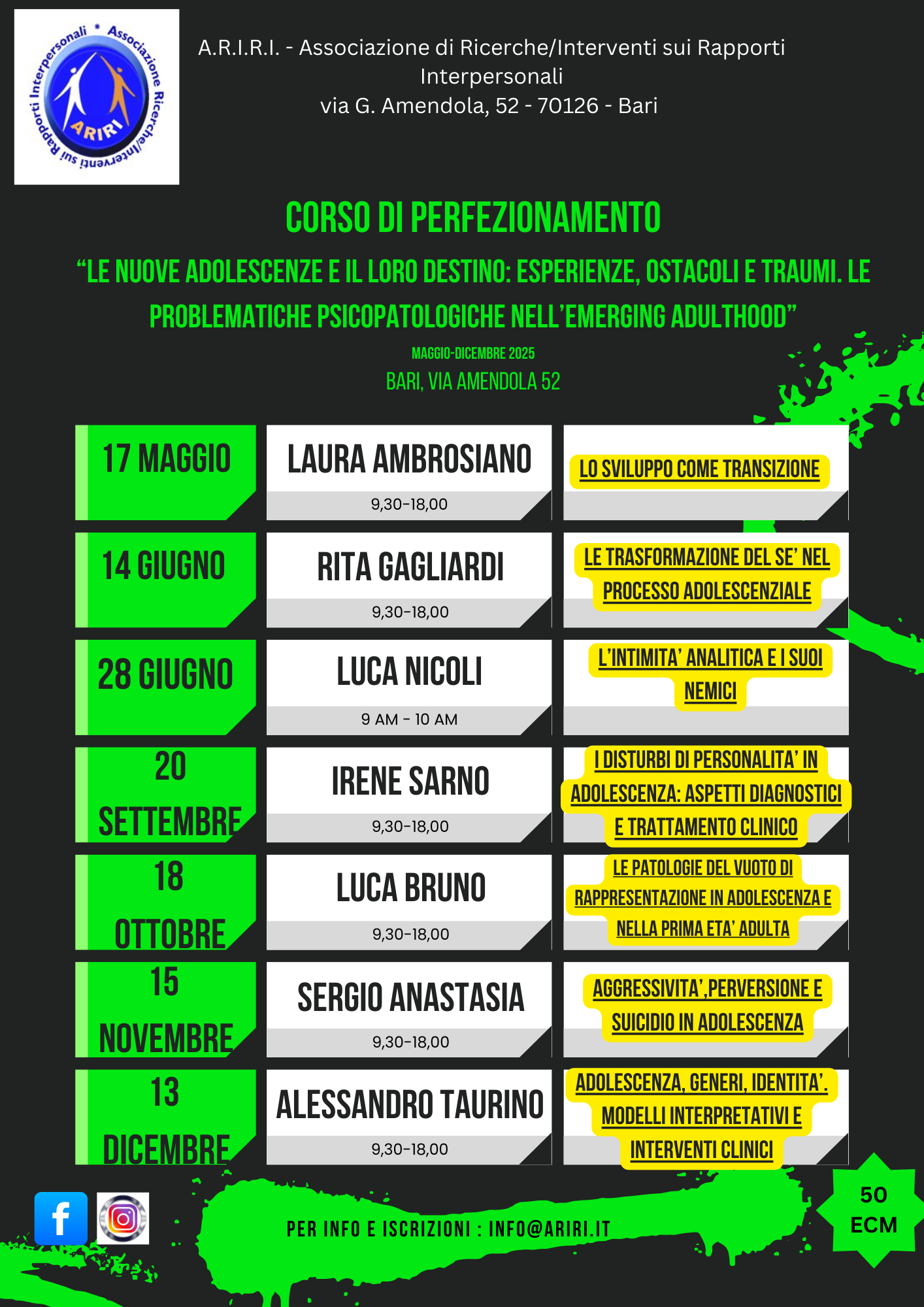 Convenzione dell’Ordine con la Scuola di Specializzazione A.R.I.R.I. di Bari rispetto al Corso di perfezionamento “LE NUOVE ADOLESCENZE E IL LORO DESTINO: ESPERIENZE, OSTACOLI E TRAUMI. LE PROBLEMATICHE PSICOPATOLOGICHE NELL’EMERGING ADULTHOOD”.