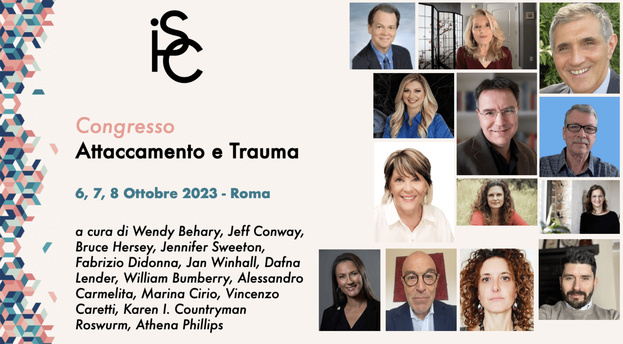 • Attaccamento e trauma 2023: lo stato dell’arte della psicoterapia (Londra) a cura di Mary Jo Barrett, Jan Winhall, Remco Van der Wijngaart, Harry Farmer, Sebern Fisher, Suzette A. Boon, Ronald D. Siegel, Alessandro Carmelita, Marina Cirio, Terry Real. Il 23-25 Giugno, a Londra, On-line e On-demand (registrato)