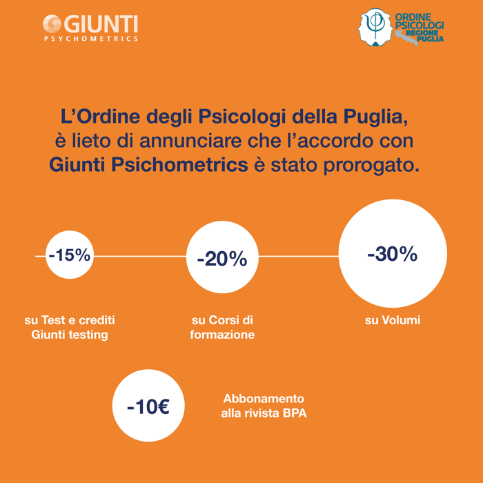 L’Ordine degli Psicologi Regione Puglia ha stipulato una Convenzione con GIUNTI PSYCHOMETRICS.