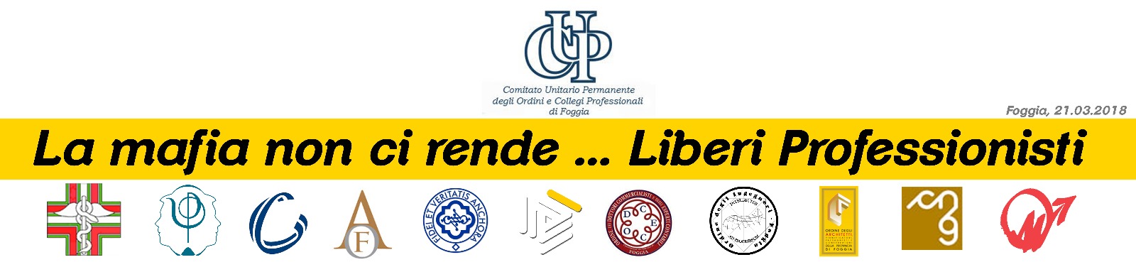 In occasione della Giornata Nazionale della Memoria indetta per il prossimo mercoledì 21 marzo a Foggia non poteva venire meno il sostegno dei soci del C.U.P., il Comitato Unitario Permanente degli Ordini e Collegi Professionali di Foggia.