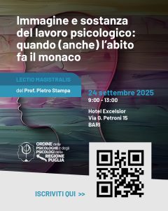 Evento organizzato dall’Ordine delle Psicologhe e degli Psicologi della Regione Puglia nell’ambito di un ciclo di incontri sulle metodologie e strumenti per la promozione della professione.