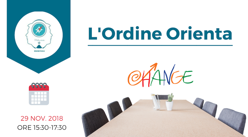 Il prossimo evento sarà gestito dalla Scuola Change e si terrà il 29 novembre 2018 dalle ore 15.30 alle ore 17.30 presso la sede dell’Ordine degli Psicologi della Regione Puglia in via F.lli Sorrentino 6, a Bari.