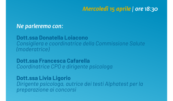 La Commissione Salute coordinata dalla consigliera Donatella Loiacono, organizza un webinar dedicato a tutte le colleghe e a tutti i colleghi che stanno per affrontare …