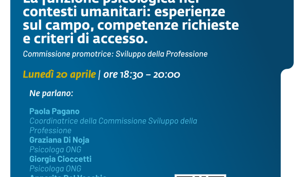 Webinar La funzione psicologica nei contesti umanitari: esperienze sul campo, competenze richieste e criteri di accesso
